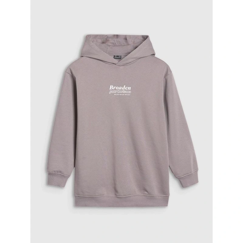 tato dívčí mikina byla navržena pro pohodlí a každodenní aktivity. Oversized střih volně sedí na těle pro naprostou volnost pohybu, zatímco měkký jednolícní úplet poskytuje pružnost a pohodlí. Díky gramáži 240 g/m² je mikina prodyšná, ale stále příjemně měkká, zatímco jednostranně počesaná vnitřní strana zajišťuje extra teplo pro chladnější dny. Je vyrobena ze 70 % bavlny a 30 % polyesteru, takže kombinuje odolnost, měkkost a pohodlnost při nošení. Integrovaná kapuce, elastické manžety a žebrovaný spodní lem přispívají k pohodlí, zatímco potisk"Rozšiřte své obzory" dodává dívčí nádech. Ideální do školy, na trénink i pro každodenní stylizaci.