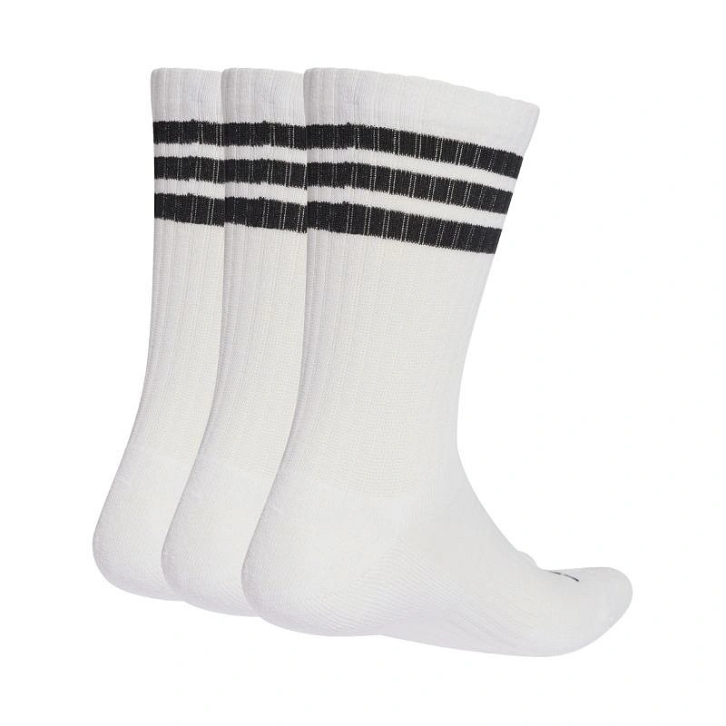 Ponožky adidas 3-Stripes Cushioned Sportswear Socks Crew 3 páry bílé a černé JZ0532 Tyto sportovní ponožky adidas nabízejí vysokou úroveň pohodlí při nošení. Měkký úplet s vysokým obsahem bavlny umožňuje tkanině volně dýchat, zatímco přídavek syntetických vláken zlepšuje odolnost a pružnost materiálu. Žebrování uprostřed chodidla. Elastické, vysoké žebrování. Sada obsahuje 3 páry ponožek. Materiál: 59 % bavlna, 38 % polyester, 3 % elastan, 1 % PA6 (100 % recyklovaný).