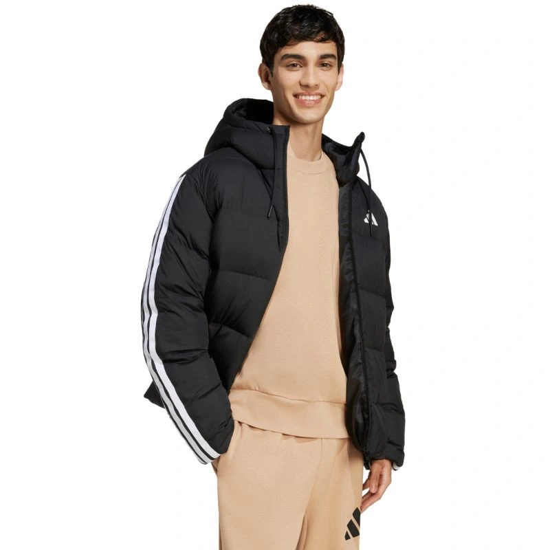 Pánská péřová bunda adidas Essentials Climawarm 3 Stripes Puffer Hooded Jacket Black JM4165