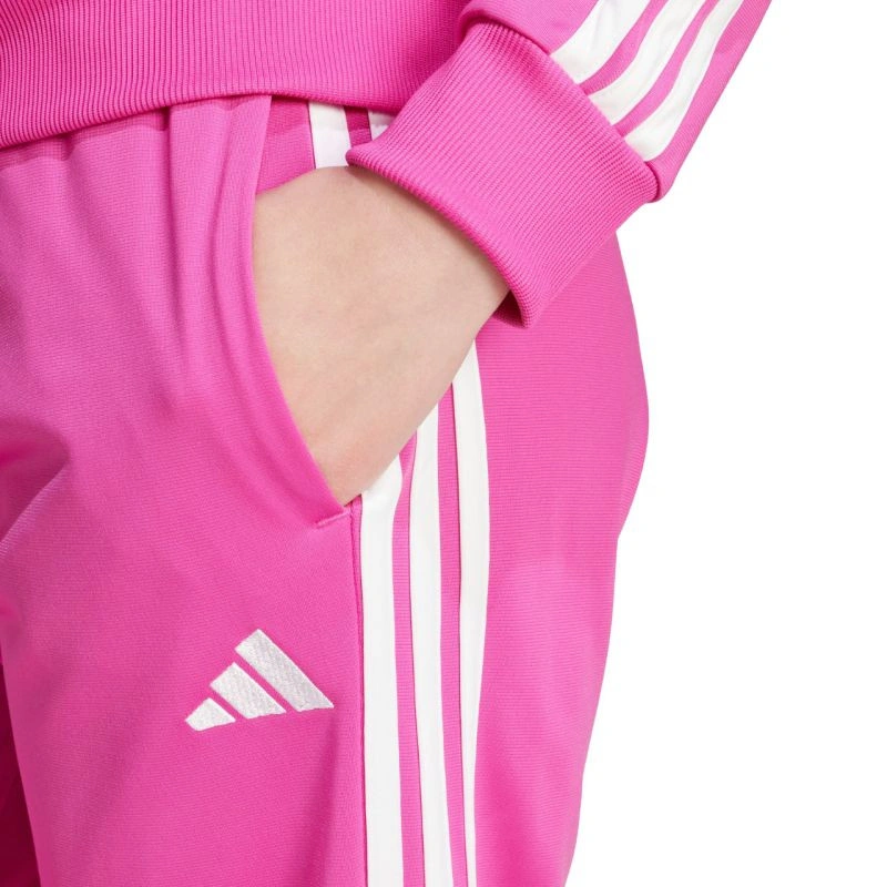 Dámská tepláková souprava adidas Essentials 3-Stripes Pink JD5436 Dámská tepláková souprava adidas poskytuje to nejlepší pohodlí při sportu i odpočinku. Rychleschnoucí tkanina z recyklovaných vláken. Rozepínací mikina. Spodní část mikiny a manžety s žebrovanými lemy. 3 výrazné pruhy na ramenou a bocích kalhot. Kalhoty s regulací pasu pomocí šňůrky. Mikina a kalhoty s kapsami. Standardní střih. Materiál: 100% recyklovaný polyester.