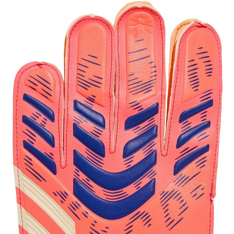 Brankářské rukavice adidas Predator Training white/orange JN5355 Pánské brankářské rukavice adidas pro trénink. Střih s vnějšími švy na prstech. Vnitřní dlaň z latexu Soft Grip. Pásek na zápěstí obepíná polovinu.