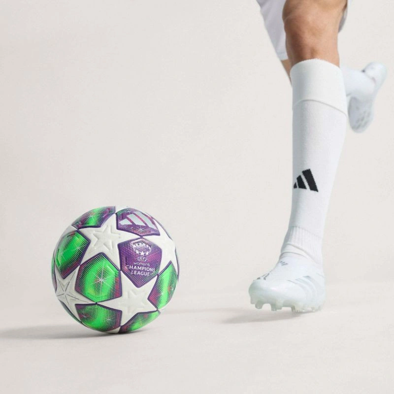Oficiální zápasový míč používaný během skupinové fáze UEFA Women's Champions League 25/26 a určený pro hru na přírodním trávníku. Úžasný design byl korunován značkou FIFA Quality Pro, která potvrzuje vysokou kvalitu míče v souladu s požadavky hry na profesionální úrovni. Tepelně svařované panely. Vysoce výkonná konstrukce v podobě malých hvězdiček. Vnitřní butylový měchýř, udržující optimální napětí vzduchu. Technické údaje:- Skořepina: 61 % polyuretan, 30 % polyester (recyklovaný), 9 % viskóza- Bezešvá, tepelně svařovaná konstrukce- Vysoce výkonný butylový měchýř- Certifikát FIFA Quality Pro- Tištěné logo UEFA Women's Champions League- Model vyžaduje nafukování vzduchem.