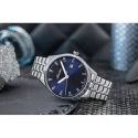 Męski zegarek Adriatica A8330.5115Q to ukłon w stronę nowoczesnej elegancji zakorzenionej w szwajcarskiej precyzji. Głęboka,granatowa tarcza z efektem sunburst hipnotyzuje grą światła, a wyraziste, srebrne indeksy i masywne wskazówki nadają całości pewności i charakteru. Każdy detal – od smukłych minutowych znaczników po starannie wykrojone okienko datownika – został dopracowany z myślą o funkcjonalności i stylu. Wewnątrz koperty pracuje dokładny mechanizm kwarcowy Swiss Made, stworzony po to, by dotrzymywać Ci kroku – niezależnie od tempa dnia. Odporne na zarysowania szkło szafirowe zabezpiecza tarczę przed codziennymi wyzwaniami, zachowując jej przejrzystość i głębię koloru. Stalowa bransoleta o pięciorzędowym splocie doskonale układa się na nadgarstku, a polerowane i szczotkowane powierzchnie dodają zegarkowi luksusowego wykończenia. 41-milimetrowa koperta łączy proporcje i wygodę – pasuje zarówno do koszuli, jak i do casualowego outfitu.