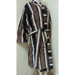Pánský dlouhý župan se šálovým límcem, se zajímavým černo-bílo-hnědým potiskem.