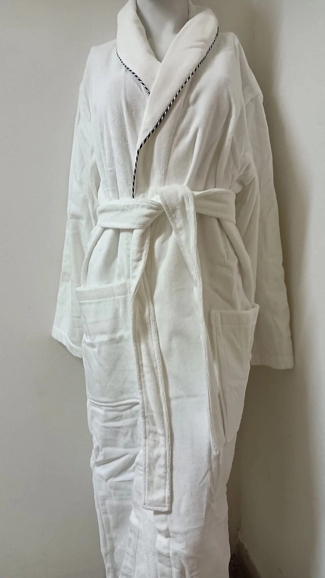 Dlouhý dámský župan z froté materiálu uvnitř a mikroplyšu vrchní části,