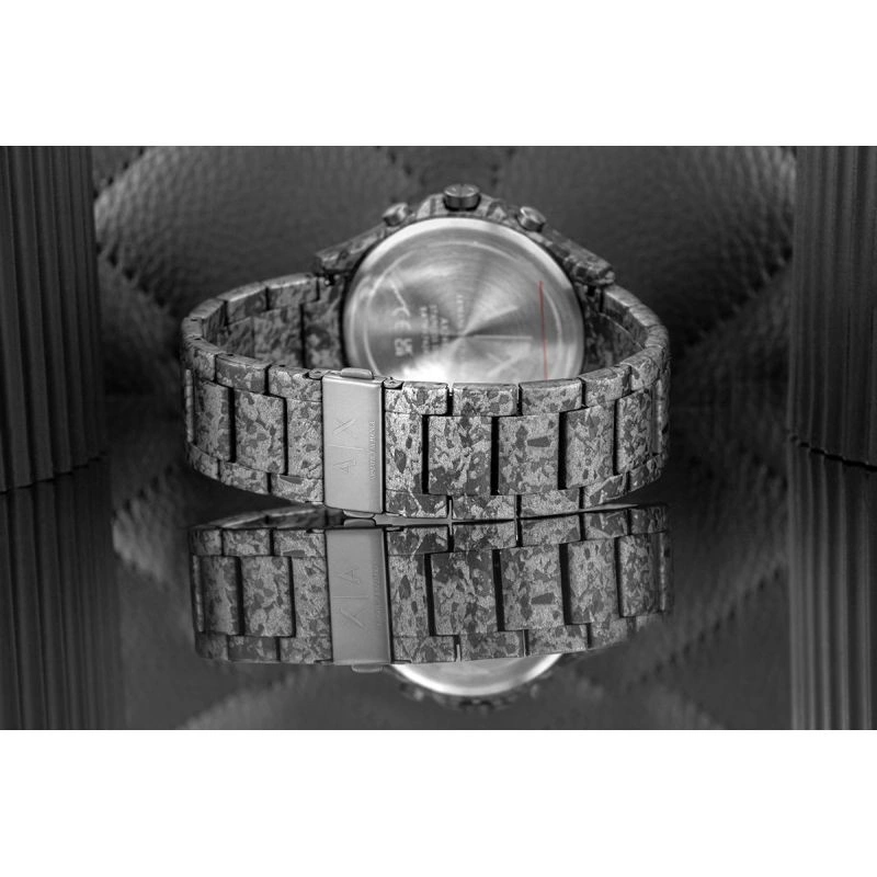 Pevný plášť s jedinečnou strukturovanou povrchovou úpravou připomínající betonový povrch odlišuje tento model od klasických hodinek. Strohý kamenný design hodinek AX2462 stimuluje zrak a připomíná sílu a nezlomnost mužského charakteru. Sytě černá barva strukturovaného ciferníku fascinuje oko, zatímco přesné ručičky lákají příslibem dokonalosti v každém detailu. Chladná váha náramku na zápěstí představuje jistotu, kterou poskytuje spolehlivost a styl, který neuznává kompromisy. Jsou to hodinky pro muže, který ví, že skutečná síla je v detailech.
