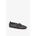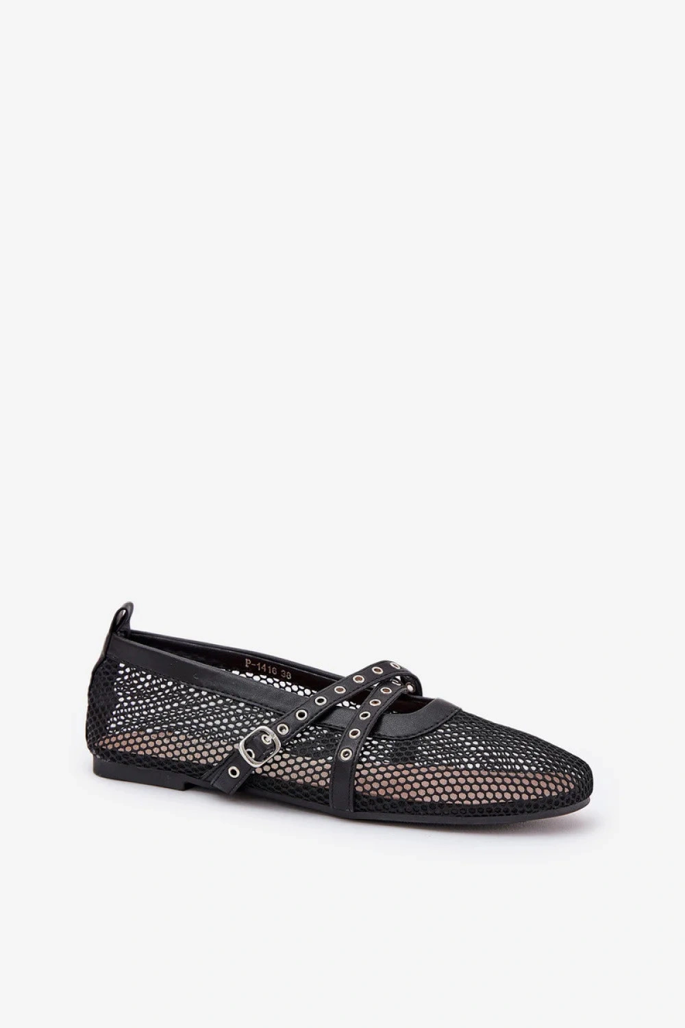 Elegantní dámské baleríny vyrobené z prodyšné síťoviny. Umístěné na ploché podrážce, poskytují pohodlí nošení. Dva ozdobné, prolínající se pásky jim dodávají elegantní charakter. Zaoblené špičky a měkká vložka zaručují pohodlí po celý den. Ideální pro každodenní i formální stylizace.