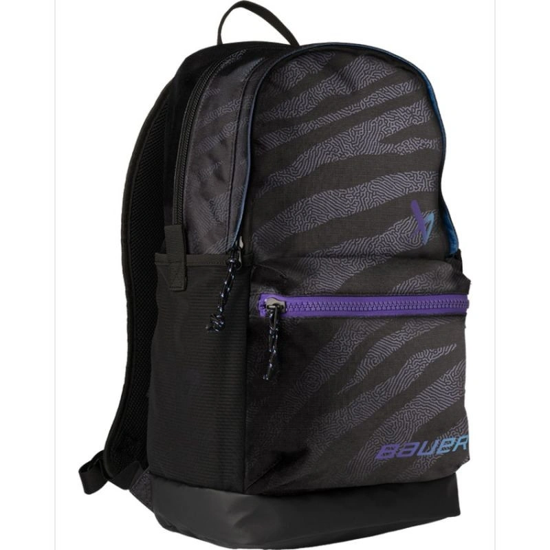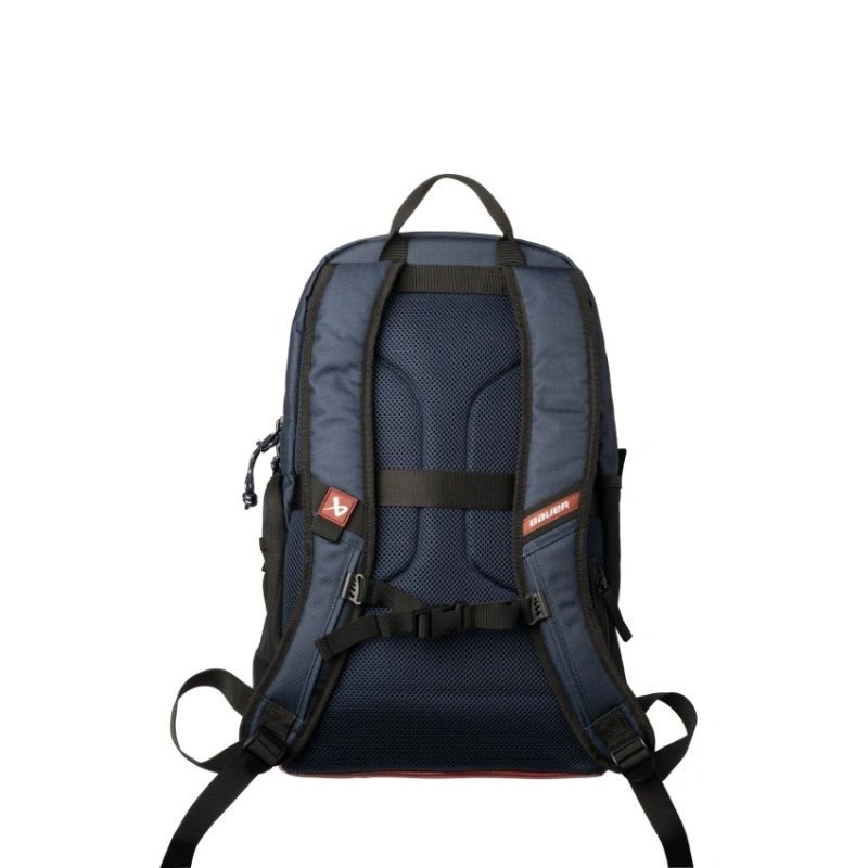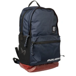 Plecak Bauer Varsity Plecak Bauer Varsity to uniwersalny i funkcjonalny model, który świetnie sprawdzi się zarówno w szkole, jak i na lodowisku. Łączy sportowy charakter z praktycznym układem kieszeni, dzięki czemu wszystko, czego potrzebujesz w ciągu dnia, masz zawsze pod ręką. Głowne cechy: Przemyślany design: Granatowy materiał 560D ze wzmocnionym dnem i sublimowaną wyściółką wewnętrzną zapewnia trwałość oraz elegancki, sportowy wygląd. Funkcjonalne przechowywanie: Pojemna główna komora z okrągłym zamkiem i organizerem na akcesoria, dwie dodatkowe kieszenie z przodu, ukryta kieszonka na paszport oraz boczne przegrody na butelki z wodą. Komfort użytkowania: Regulowane paski na ramiona oraz praktyczna przegroda umożliwiająca zamocowanie plecaka na walizce z kółkami. Wymiary: 25 cm x 18 cm x 49 cm [pojemność 25 l] Plecak Bauer Varsity to idealny wybór dla osób, które potrzebują wytrzymałego i praktycznego plecaka na co dzień – od szkoły po sportowe wyzwa