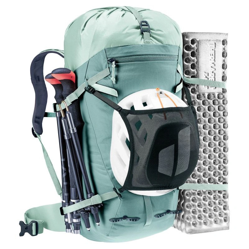 Batoh Deuter Guide 28 SL Jade Frost je profesionální horský batoh s objemem 28 litrů, vytvořený speciálně pro ženy díky nosnému systému SL (Short Length), který je přizpůsoben kratším zádům. Je ideální pro horolezectví, parašutismus a trekking v náročném terénu, je vybaven zádovým systémem Alpine pro stabilitu a pohodlí i při nošení těžšího nákladu. Má úchyty na cepíny a hole, možnost uchycení lana, kompatibilitu s hydratačním systémem a možnost uchycení na helmu. Je vyroben z odolných materiálů odolných proti oděru a barva Jade Frost mu dodává moderní, sportovní vzhled.