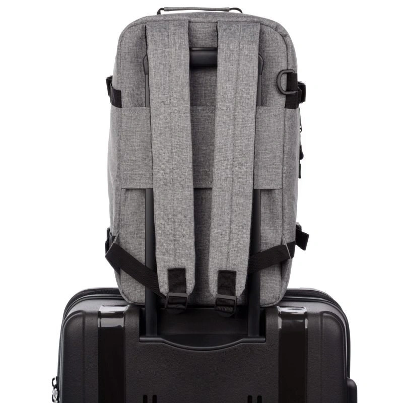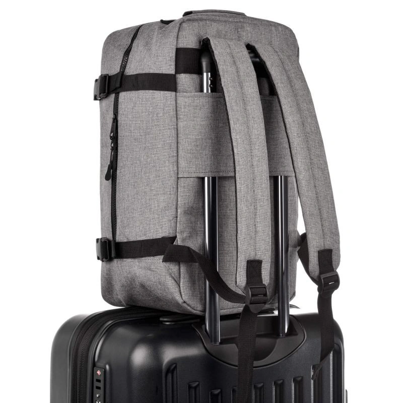 Hlavní přihrádka a tři menší kapsy, včetně jedné síťované, nabízejí chytré uspořádání prostoru pro nezbytné věci a drobnosti. Další vnější kapsa na zip je ideální pro doklady, telefon nebo tablet. Pohodlný pohyb se zavazadlem usnadňuje speciálně navržené madlo pro připevnění batohu k rukojeti kufru.