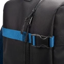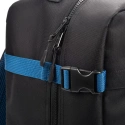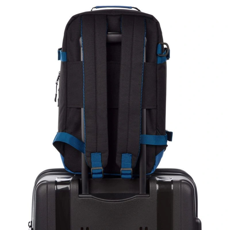 Hlavní komora a tři menší kapsy, včetně jedné síťované, nabízejí chytré uspořádání prostoru pro nezbytné věci a drobnosti. Další vnější kapsa na zip je ideální pro doklady, telefon nebo tablet. Pohodlný pohyb se zavazadlem usnadňuje speciálně navržené madlo pro připevnění batohu k rukojeti kufru.