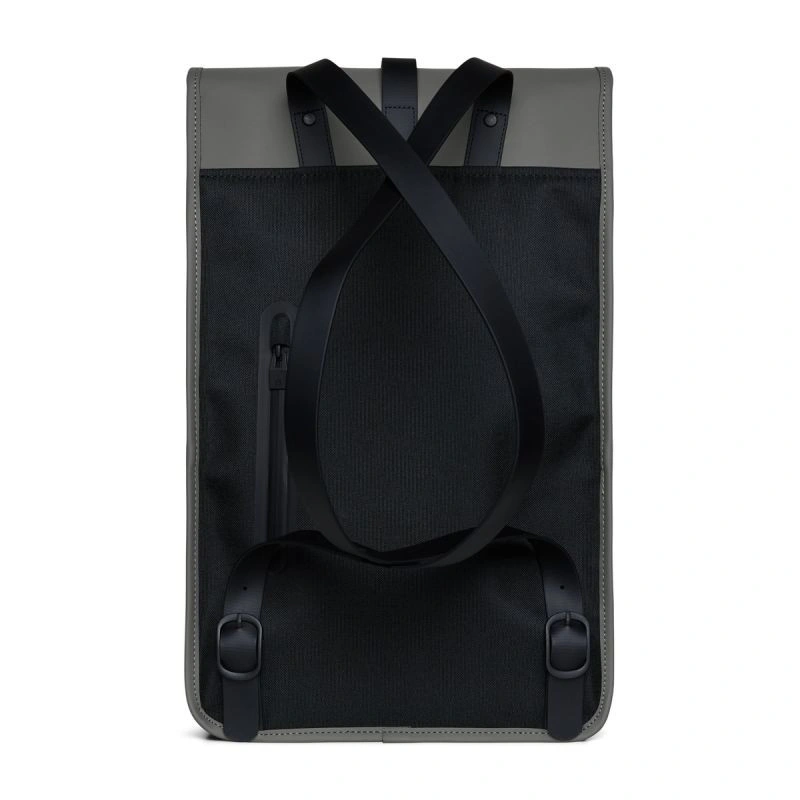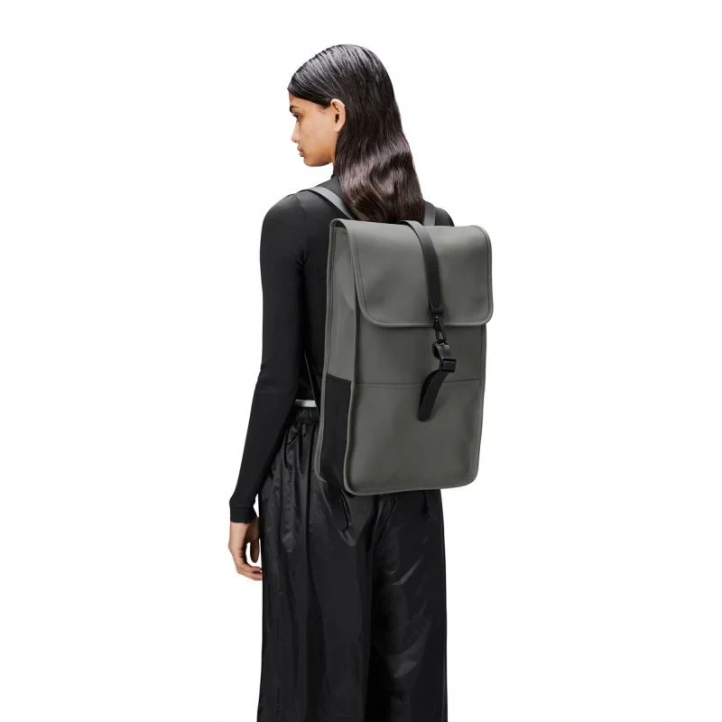 - Batoh je vyroben z charakteristické voděodolné PU tkaniny Rains, navržené pro pevnost, odolnost a hladkost.