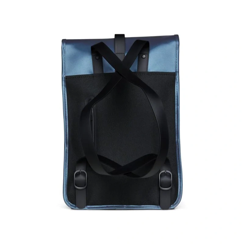 - Batoh Mini je vyroben z charakteristické voděodolné PU tkaniny Rains, která je navržena pro pevnost, odolnost a hladký omak