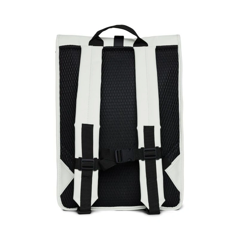- Batoh Rolltop je vyroben z charakteristické voděodolné PU tkaniny Rains, která je navržena pro pevnost, odolnost a hladkost.