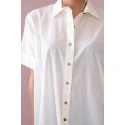 Bavlněná košile s krátkým rukávem je perfektní volbou do teplých dnů, spojuje eleganci s pohodlím. Košile vyrobená z vysoce kvalitní bavlny poskytuje nejen příjemný pocit na pokožce, ale také dobrou ventilaci a volnost pohybu. Krátký rukáv dodává košili lehkost a dodává jí ležérní charakter, díky čemuž se skvěle hodí jak do práce, tak na neformální schůzky nebo ven. Univerzální střih dělá z bavlněné košile s krátkým rukávem nenahraditelný prvek v šatníku každé ženy, která si cení stylu a pohodlí. Velikost je univerzální a bude vhodná pro ženy, které nosí velikost S, M nebo L.
