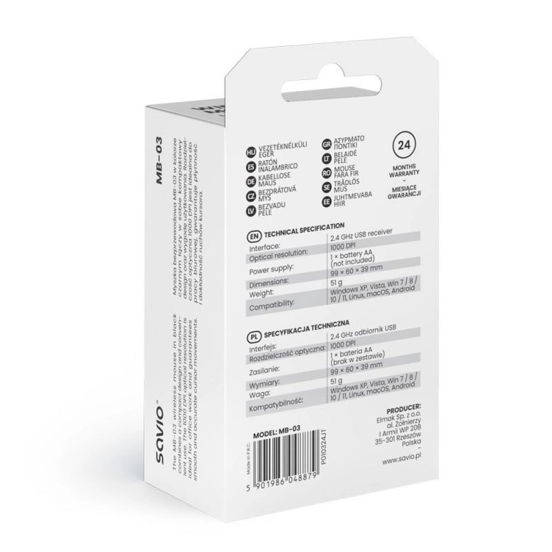 BEZDRÁTOVÁ MYŠ SAVIO MB-03