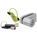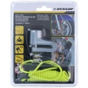 Zámek DUNLOP BRAKE DISK PLATE BLOCK pomůže ochránit motocykly, skútry, jízdní kola a další vozidla s kotoučovými brzdami před krádeží. Zámek funguje tak, že zabraňuje protáčení kol. Kabel o průměru 4 mm je dlouhý až 150 cm, takže jej snadno připevníte na řídítka.