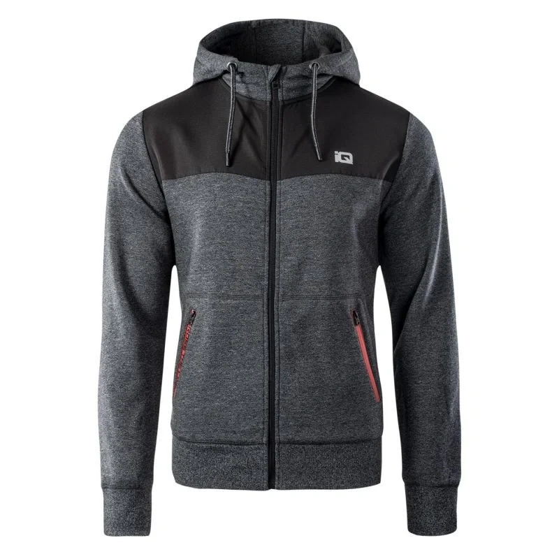 Vlastnosti: pánská mikina IQ s kapucí celorozepínací boční kapsy na zip žebrované manžety a spodní