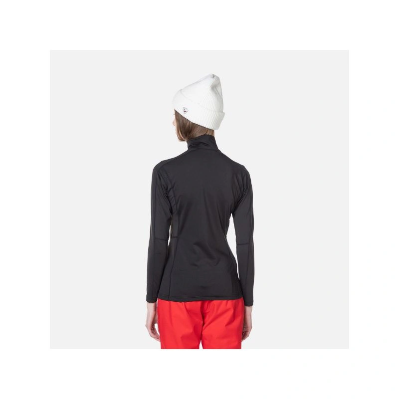 První vrstva nejblíže k tělu musí být měkká a příjemná na dotek. Dámské tričko s krátkým zipem je vyrobeno z vysoce elastické tkaniny, která neomezuje v pohybu a zaručuje teplo za každého počasí. Speciální vazba úpletu zajišťuje rychlý odvod vlhkosti, takže pokožka zůstává v suchu a teple. Zip u krku je omezen malým překrytím, aby konec zipu nedráždil krk.
