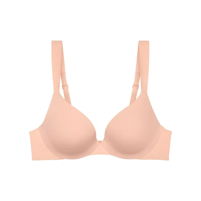 - Pěnové košíčky se splývavými okraji a integrovanými polštářky přizpůsobují nadnášení a centralizaci velikosti poprsí