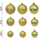 Sada 46 ozdobných baňek MICA ve zlaté barvě je ideálním řešením. Jsou vyrobeny z nerozbitného plastu, jsou lehké, odolné a zcela bezpečné - ideální do každého interiéru, včetně interiérů s dětmi nebo domácími mazlíčky. Různé povrchové úpravy - matná, třpytivá a lesklá - vám umožní vytvořit jedinečnou, vícerozměrnou dekoraci vánočního stromku.