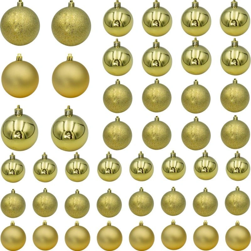 Sada 46 kusů zlatých ozdob MICA - elegance, bezpečnost a sváteční třpyt v jednom! Ozdobte si vánoční stromeček, který bude poutat pozornost, a vneste do svého domova kouzlo Vánoc.