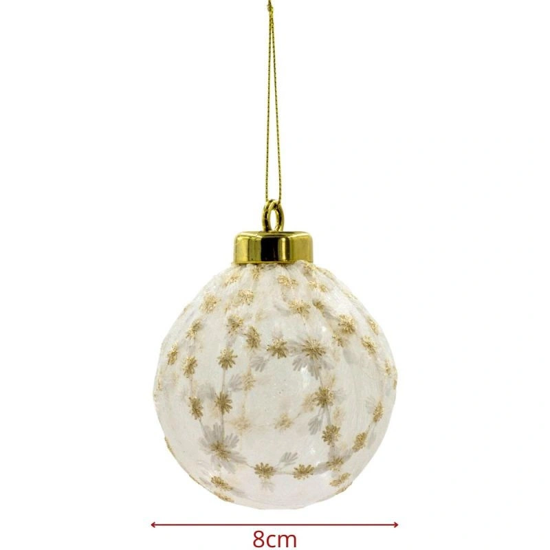 BEZPEČNÁ PLASTOVÁ BOMBA 8CM KORUNOVANÁ MIKOVÝMI HVĚZDAMI je kombinací bezpečnosti a estetiky - vypadá jako křehké sklo, ale je vyrobena z odolného plastu. Díky jemným zlatým hvězdám a krajkové struktuře krásně odráží světlo světel vánočního stromku a dodá vašemu interiéru jedinečnou atmosféru. Je to dekorace, která se uplatní v klasických i moderních aranžmá.