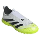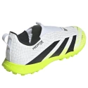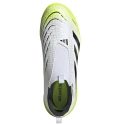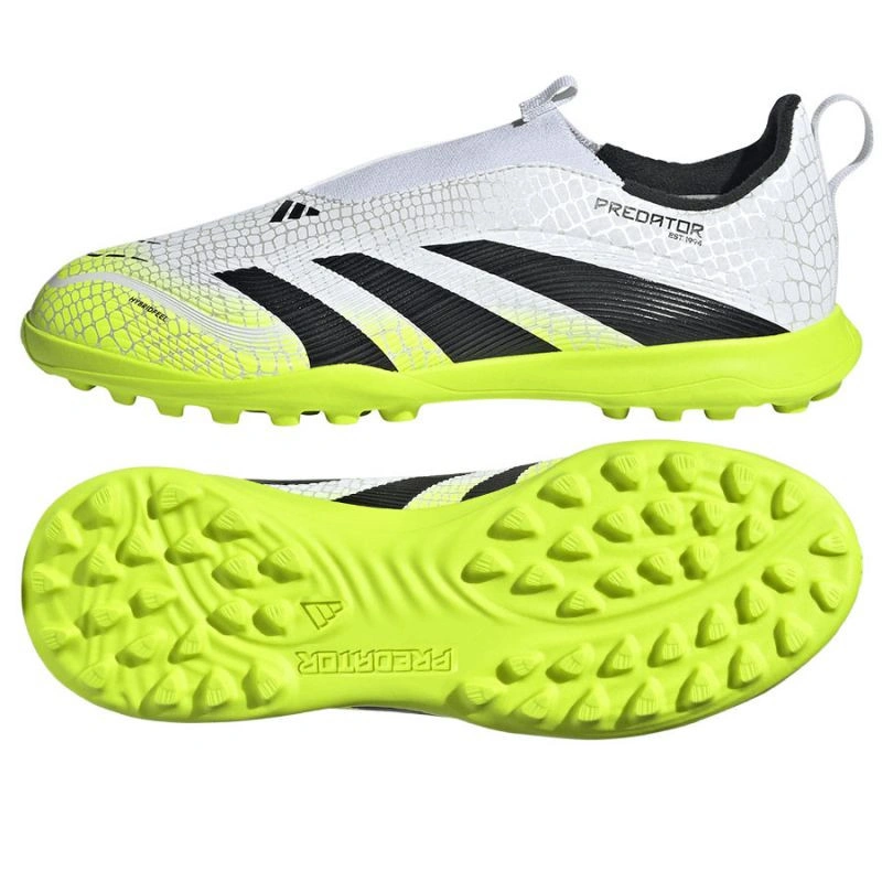 Svršek Hybridfeel těchto mládežnických kopaček bez šněrování je pokrytý vypouklou strukturou a je vybaven překryvy Strikescale grip na vnitřní straně chodidla byl optimalizován pro přesné střely. Gumová podrážka s výstupky zajišťuje stabilitu na umělém trávníku.