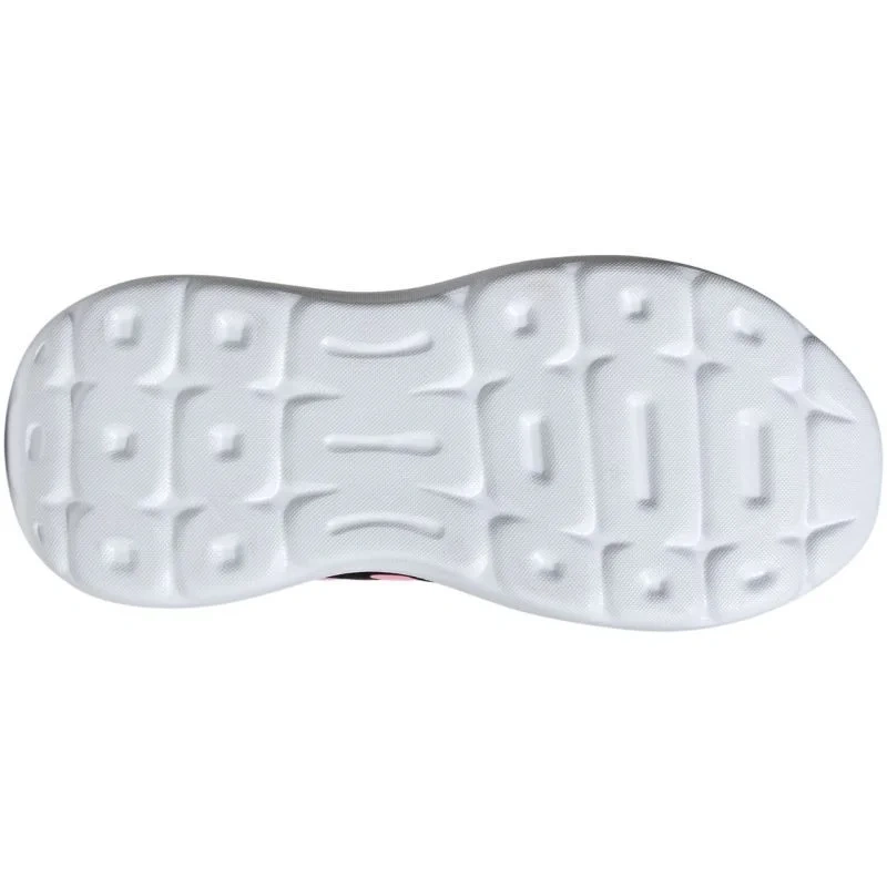 Tato dětská obuv adidas je ideální na běhání, má textilní svršek vyztužený syntetickými vložkami, šněrovací konstrukci, lehkou mezipodešev Cloudfoam se zvýšeným profilem a podrážku z pěny EVA pro trakci. Část obuvi je vyrobena z recyklovaných materiálů.