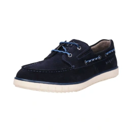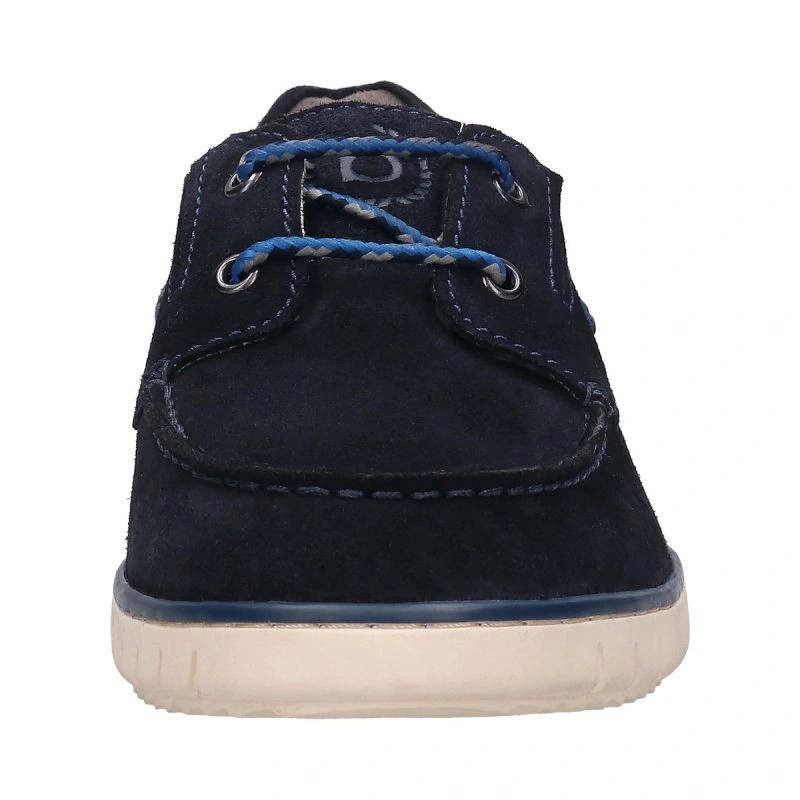 Tmavě modré šněrovací boty s mokasínovým vzhledem.