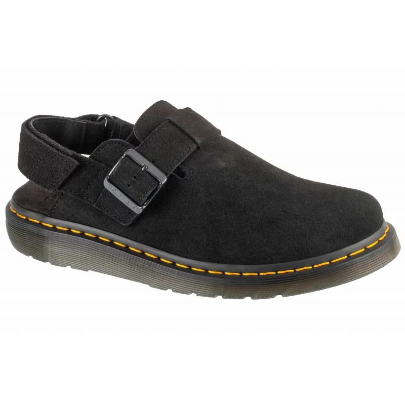 Tento pár je vyroben ze semišového svršku a stojí na naší klasické sandálové podrážce Shore. Dva nastavitelné pásky jsou připraveny na celé léto a zajistí pohodlné nošení. Žluté prošívání vás označí jako nositele DM.