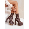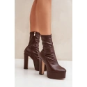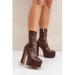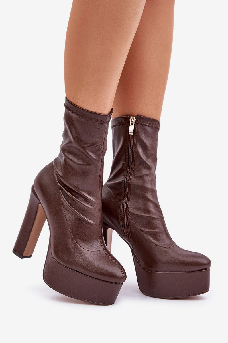Dámské boty vyrobené z ekologické kůže. Tento model vyniká masivní platformou a vysokým sloupkovým podpatkem. Zapínání na zip. Vnitřek je zateplený pouze v oblasti chodidla. Špičky ve tvaru mandle. Stylové a ženské, skvělé na různé příležitosti! Při výběru velikosti se řiďte tabulkou velikostí.