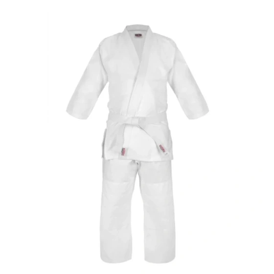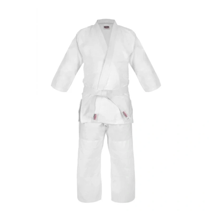 Model: Judo kimono 450 gMateriál: 100% bavlnaHmotnost: 450 g/m2Včetněopasku: ano, v bílé barvěVelikost: 100 cmHalenka: tradiční střih, s 3/4 rukávy, rozparky a zavazováním na bocíchKalhoty: v pase na šňůrku s gumou s přídavnou šňůrkou, dvojitě vyztužená kolena, velký klín umožňuje větší volnost pohybu a pohodlí při nošení podvazkůBalení: plastový obal