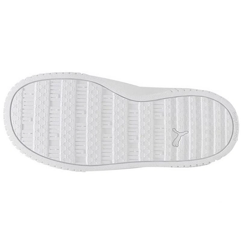 Dětské boty Puma Carina 2.0 AC white 386187 12 Dětské boty Puma se budou dobře hodit na každodenní nošení. Svršek je vyroben z ekologické kůže. Perforace na přední a boční straně. Elastický systém šněrování usnadňuje vyzouvání a nazouvání. Vyjímatelná stélka Kinder-Fit®. Gumová podrážka.