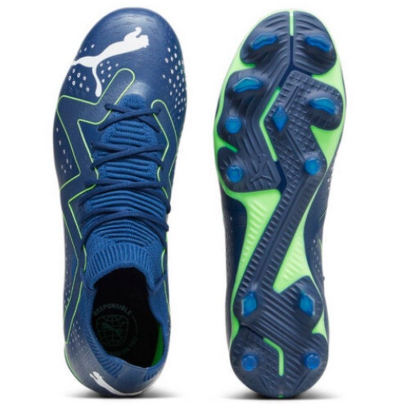 Pánské kopačky Puma Future Match FG/AG navy blue 107370 01 Pánské kopačky Puma jsou stylovou kombinací inovativních technologií a bezkonkurenčního pohodlí na hřišti. Pánské kopačky Puma mají specializovanou podrážku určenou pro poloamatérskou hru na přírodním trávníku i umělém povrchu. Model z kolekce Breakthrough Pack, který představuje originální design. Lehký svršek z dvojité síťoviny a elastického úpletu. Syntetický svršek. Systém Fuzionfit360 stabilizuje nohu a umožňuje dynamičtější pohyby na hřišti. Stabilní v patě a flexibilní v přední části chodidla, podrážka Dynamic Motion System.