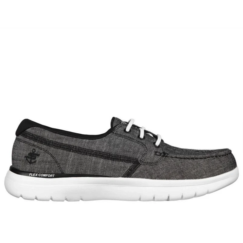Kultovní design a prvotřídní materiály spojují síly s inovativní technologií Skechers Performance pro maximální pohodlí a styl. Klasická námořní obuv Skechers On-the-GO® Flex - Ashore má svršek z měkké plátěné tkaniny s melanžovou úpravou a stélku Skechers Air-Cooled Goga Mat™ a lehkou odpruženou mezipodešev ULTRA GO®.