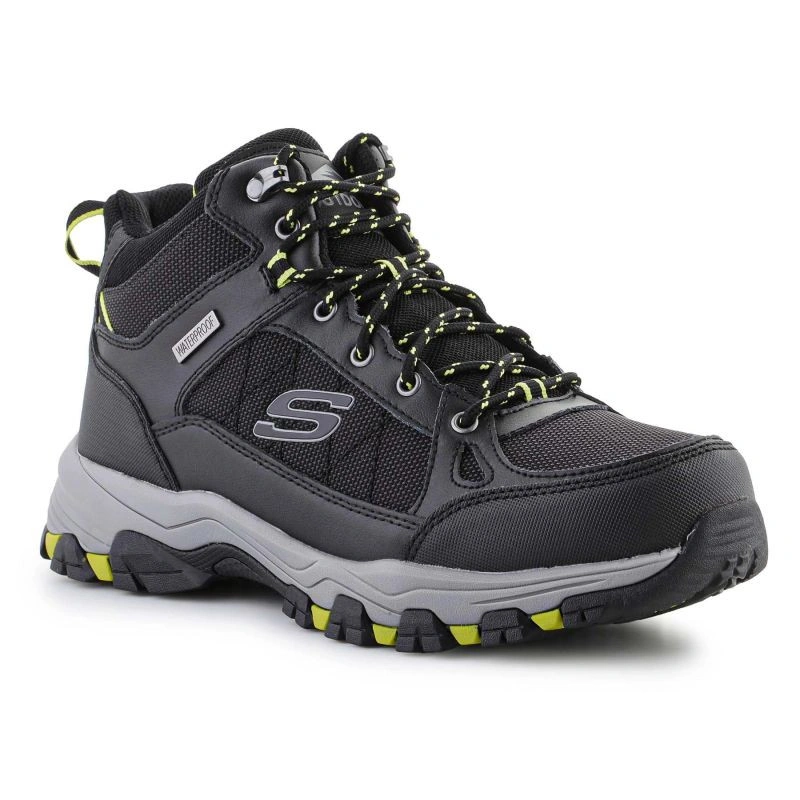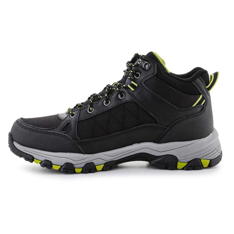 - Tento model pro střední tratě má svršek z voděodolné kůže, syntetiky a síťoviny, šněrování vpředu a odpruženou stélku Skechers Air-Cooled Memory Foam®.