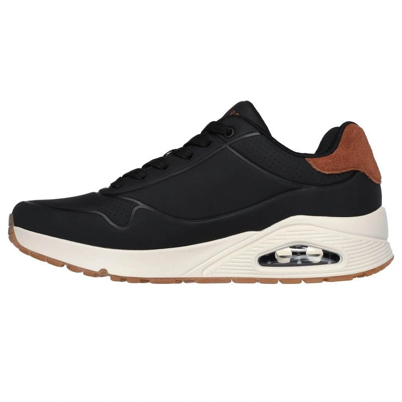 - Skechers Uno Suited On Air 183004-BBK Black je stylová pánská obuv v černé barvě, ideální pro každodenní nošení i speciální příležitosti.