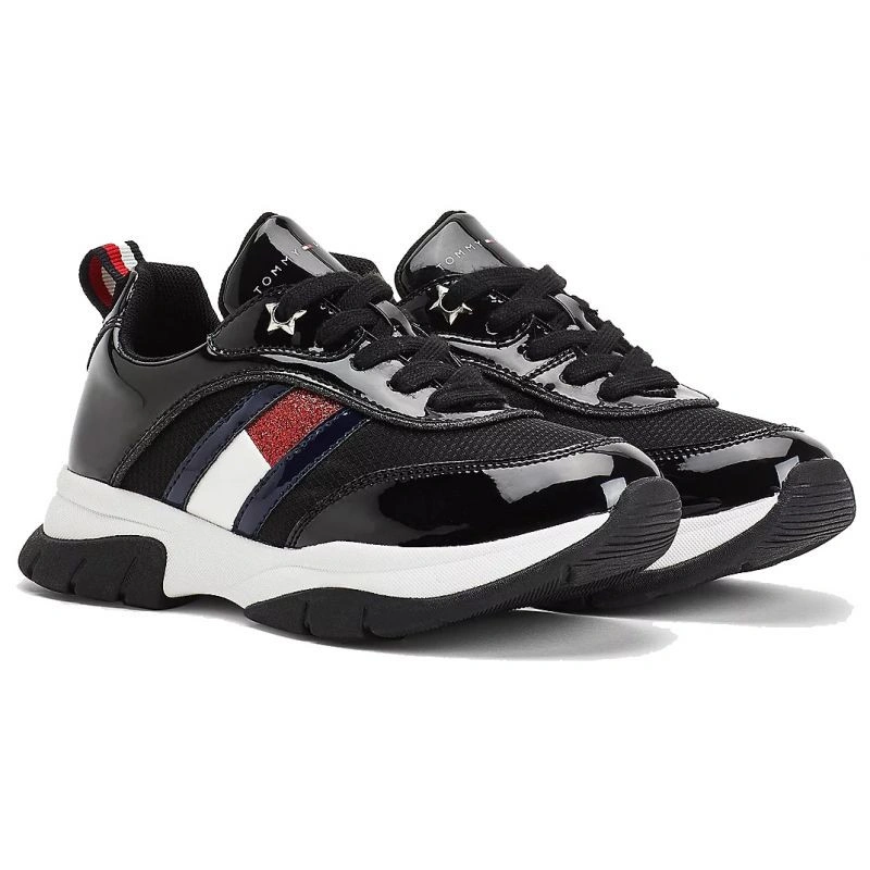 - Tyto šněrovací sportovní boty na hrubé odolné podrážce vypadají úžasně díky lakovaným a třpytivým vsadkám na svršku.