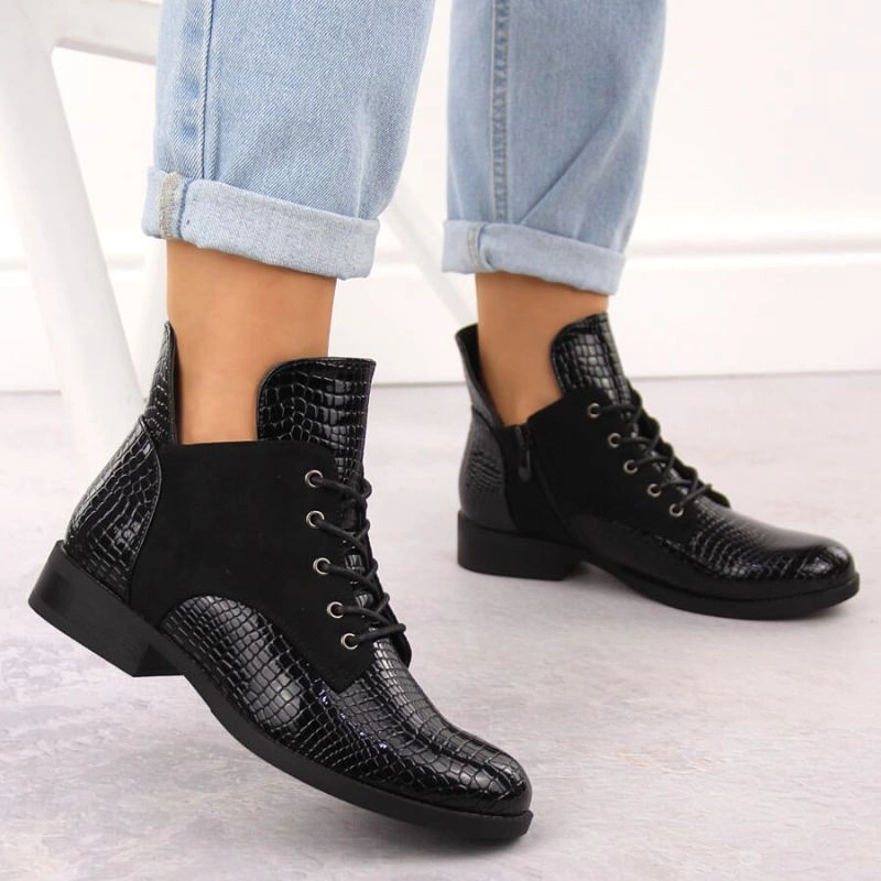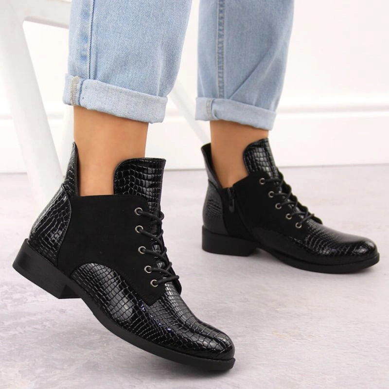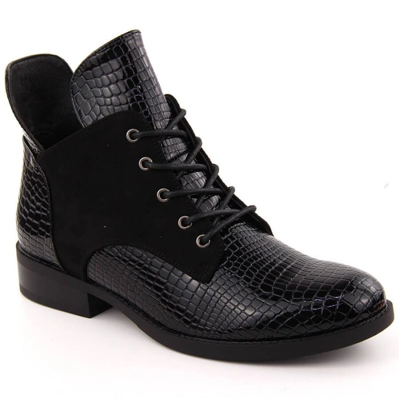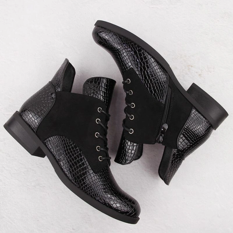 Krásně lesklý lakovaný svršek v kombinaci s organickým semišem jim dodá šmrnc!