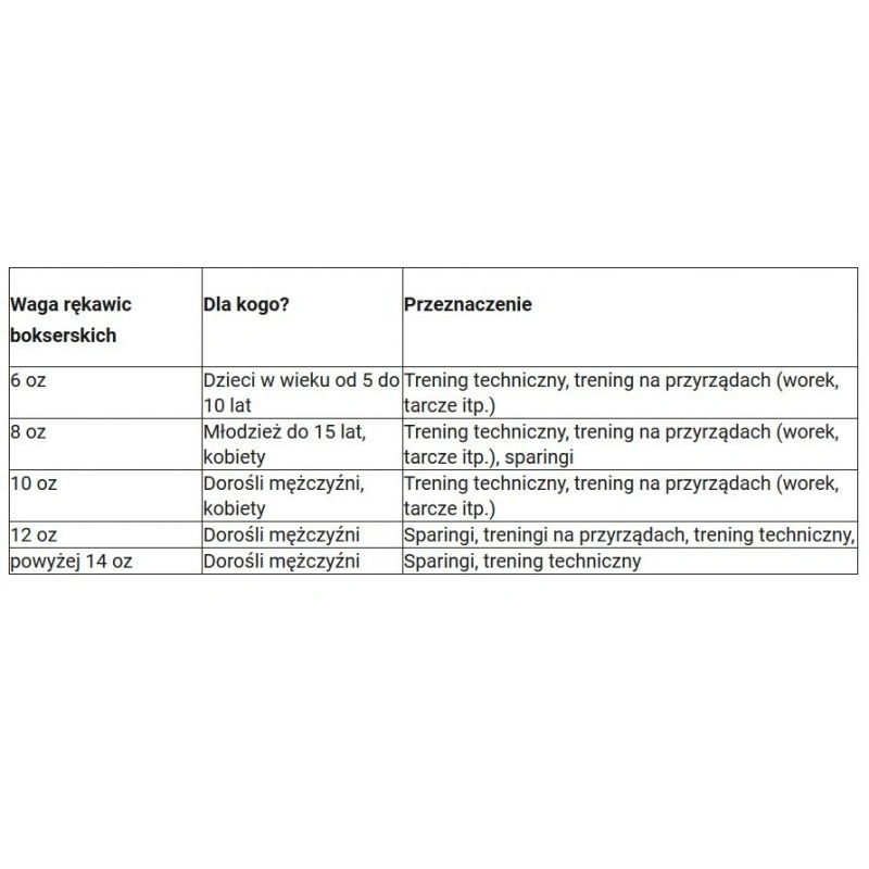 - Rukavice SHARK jsou vynikající volbou pro ty, kteří začínají s bojovými sporty. Ideální poměr cena/výkon.- Velikosti 6oz a 8oz jsou určeny pro juniory, velikosti 10oz a 12oz jsou určeny pro dospělé.- Na rozdíl od běžných rukavic ze syntetické kůže jsou rukavice SHARK z vnitřní strany navíc podšity speciální tkaninou, která zvyšuje odolnost materiálu proti poškození.- Ideální pro začátek vašeho dobrodružství v bojových uměních- Vynikající tlumení- Rukavice jsou vyplněny speciální odrůdou pěny pro vynikající tlumení nárazů a odolnost proti shlukování.- Rukavice výborně tlumí nárazy i při intenzivním a dlouhodobém tréninku, takže je lze s úspěchem používat při každodenním tréninku na nářadí (na boxovacím pytli nebo tréninkových terčích).- Široký a pevný pásek na suchý zip zajišťuje správné zpevnění zápěstí a zaručuje bezpečnost při tréninku- Ochrana palce- Pro zvýšení bezpečnosti byl palec rukavice připevněn k rukavici páskou. Toto řešení zabraňuje vyražení palce při silných úderech.