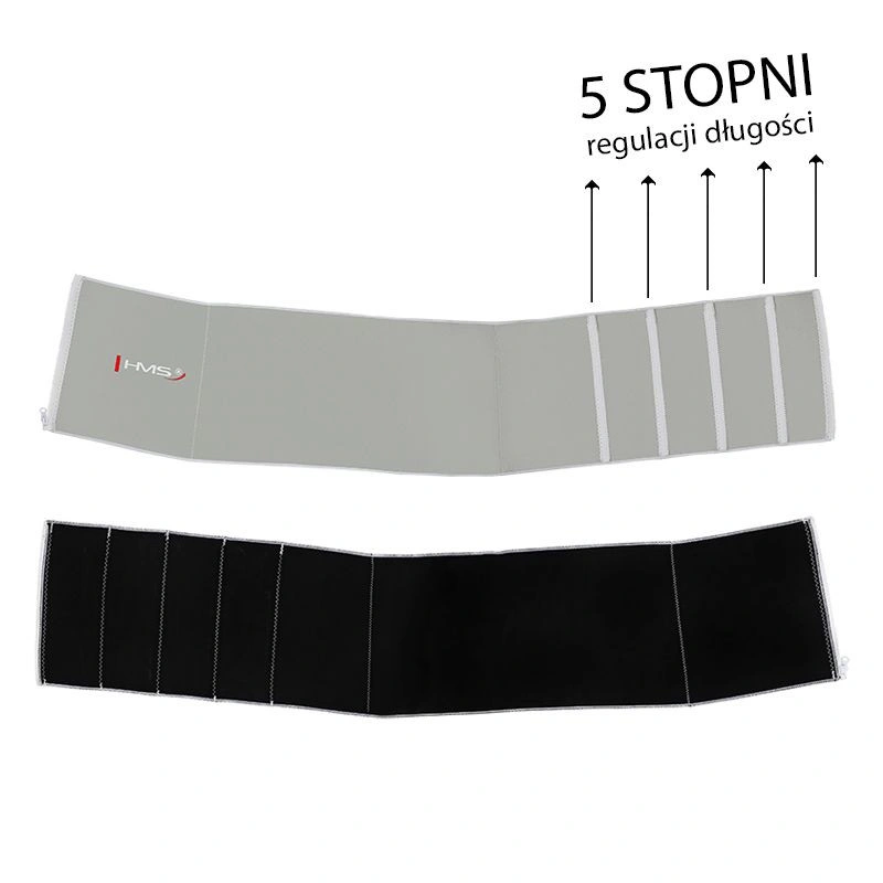 Břišní pás BR114 HMS je lehký a pohodlný, nezpůsobuje žádné nepohodlí ani při celodenním nošení. Komfort při jeho používání zaručuje zapínání na zip a pětistupňová regulace obvodu, která umožňuje dokonale přizpůsobit velikost pásu rozměrům uživatele. Další výhodou našeho břišního pásu je jeho šířka - celých 25 cm.