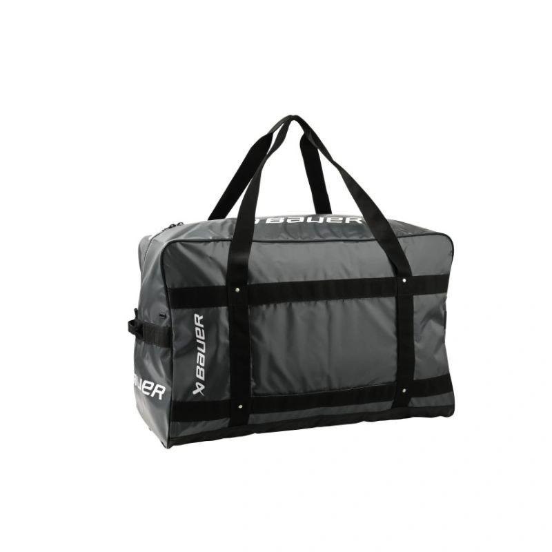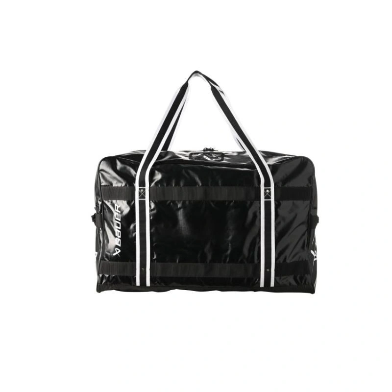 Brankářská taška Bauer Pro Carry Sr Brankářská taška Bauer Pro Carry Sr je odolná taška inspirovaná profesionálním designem, která splňuje nejvyšší nároky brankářů a kombinuje robustnost, funkčnost a přizpůsobení. Hlavní vlastnosti: Odolná konstrukce: Vyrobena z materiálů Pro-Tarp a vybavena zipy YKK zaručuje maximální odolnost. Funkční řešení: Očka Dry-Flow zajišťují efektivní ventilaci, zatímco dvě vnitřní síťované kapsy jsou ideální pro pásku, nůžky a další příslušenství. Přizpůsobení a rozměry: Funkce rychlého panelu umožňuje snadné označení tašky, zatímco rozměry 106,1 × 43,2 × 30 cm poskytují dostatečný prostor pro brankářské vybavení. Brankářská taška Bauer Pro Carry Sr je profesionální volbou, která zaručuje odolnost, komfort a plnou funkčnost pro každého brankáře.