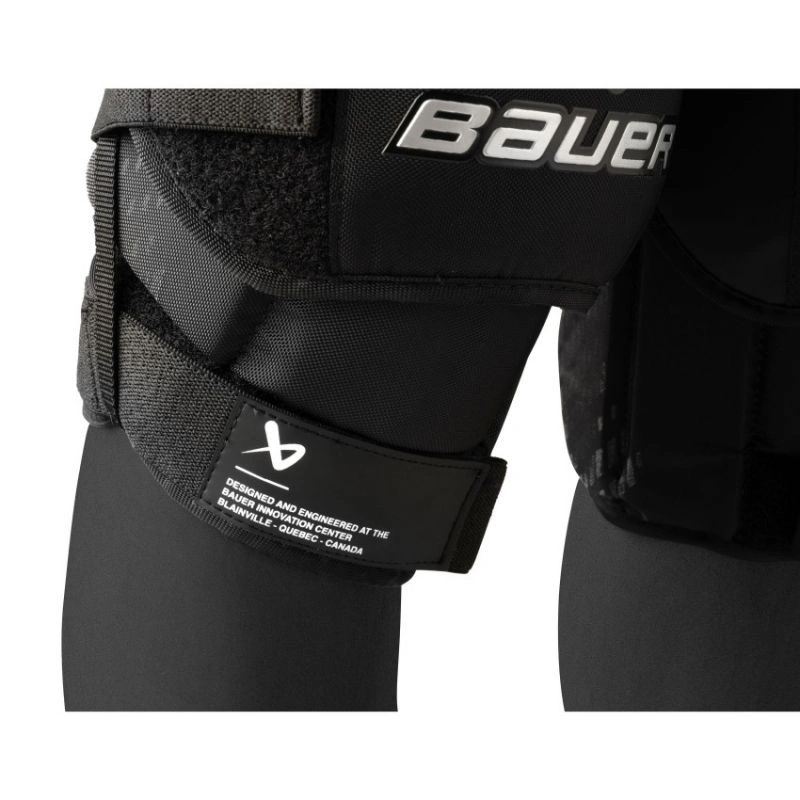 Ochraniacze kolan BAUER Elite Pewność przy każdej interwencji Ochraniacze kolan BAUER Elite to ochraniacze stworzone z myślą o pełnej mobilności. Charakteryzuje się anatomicznym dopasowaniu i stabilnym trzymaniu przez cały mecz. Z nowoczesną wyściółką i zintegrowanym systemem mocowania możesz zejść do butterfly z pełnym zaufaniem – i pozostać skupionym na obronie. Główne cechy: Dopasowanie i komfort – neoprenowy pasek: Elastyczny pasek z neoprenu naturalnie dopasowuje się do kształtu kolana, zapewniając stabilne trzymanie bez nieprzyjemnego ucisku. Ochraniacz pozostaje na miejscu, nawet gdy Twoja gra staje się maksymalnie dynamiczna. Stabilność w każdej sytuacji – system podwiązkowy: Zintegrowane mocowanie typu garter belt utrzymuje ochraniacz we właściwej pozycji przez cały czas trwania meczu – nawet podczas gwałtownych zejść do pozycji butterfly lub rozciągniętych interwencji. Komfort i świeżość – wyściółka THERMOCORE Zero: Zaawansowana, oddychają