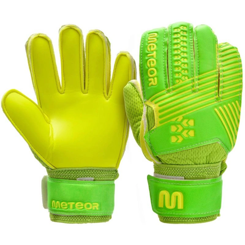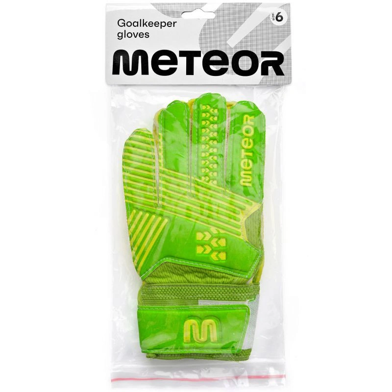 Brankářské rukavice Meteor jsou určeny pro trénink a rekreační zápasy. Vyznačují se vysokou kvalitou zpracování. Vyznačují se také dobrým tlumením nárazů a vysokou odolností proti oděru. Byly navrženy a vyrobeny tak, aby chránily vnitřní stranu brankářovy ruky při chytání míčů. Zajišťují vynikající přilnavost, odraz a pěst za všech povětrnostních podmínek. Dodatečná výztuha, působící jako blokáda, chrání prsty brankáře před zraněním. Rukavice mají široký pásek na suchý zip, který dále zpevňuje zápěstí brankáře.
