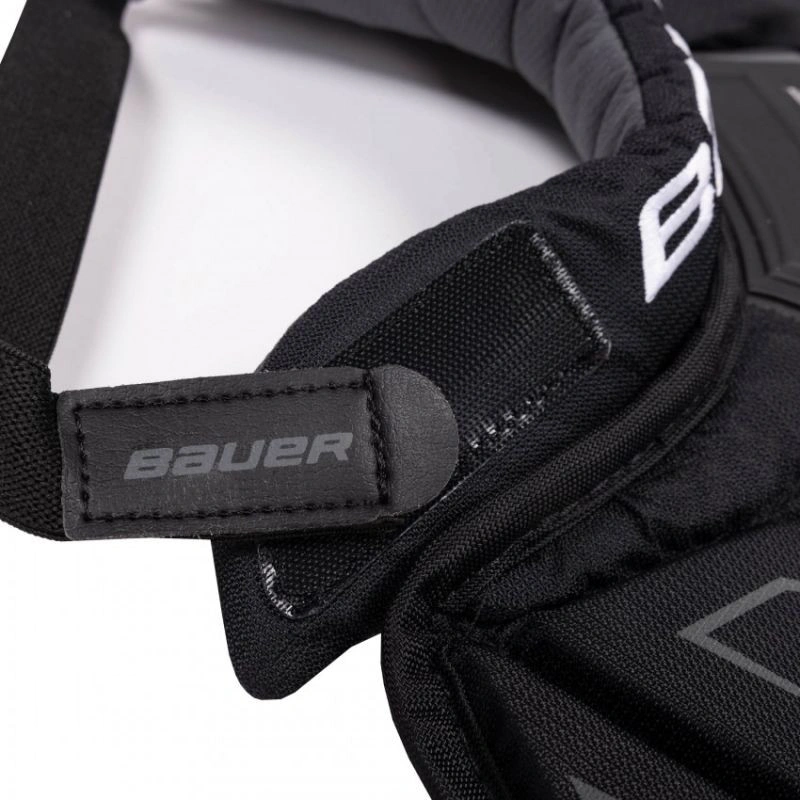 Ochraniacz szyi bramkarski Bauer Elite Sr Ochraniacz na szyję Bauer Elite Senior Goalie Neck Guard to świetna opcja dla bramkarzy którzy nie muszą nosić certyfikowanego ochraniacza szyi, ale chcą aby ich obojczyk był dodatkowo chroniony Materiał zewnętrzny Osłona obojczyka Elite jest wykonana z wytrzymałego, odpornego na ścieranie nylonu na wierzchu, podczas gdy tylna strona wykorzystuje ThermoMax firmy Bauer, aby zapewnić Ci odpowiednią wentylacje przez cały czas gry Warto zwrócić uwagę na zastosowanie nowego, znacznie trwalszego rzepa niż w przypadku pozostałych ochraniaczy Bauera. Kołnierz i obojczyk Kołnierz jest znacznie krótszy niż osłona szyi Pro i wykorzystuje miękką wkładkę ThermoMax. W części obojczykowej zastosowano mieszankę Rebound Control Foam i innych pianek HD do Rozszerzona ochrona obojczyka Ergonomiczny kształt kołnierza Wewnętrzna wyściółka: THERMOMAX Materiał zewnetrzny: Nylon Certyfikat Nie Rozmiar: 13.5 "-15.5" / 34cm-39cm