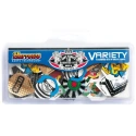Sada 30 peříček pro šipky Harrows, Variety Pack Flights, obsahující 10 náhodně vybraných sad podle vzoru, tvaru a barvy.