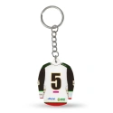 brelok 'koszulka hokejowa' GKS Tychy (Home) Szukasz praktycznego, a zarazem stylowego gadżetu, który wyrazi Twoje wsparcie dla drużyny GKS Tychy? Brelok w kształcie koszulki hokejowej tego klubu to idealny wybór! To nie tylko funkcjonalny przedmiot codziennego użytku, ale także świetna pamiątka, która doskonale oddaje ducha drużyny. Główne cechy: Design: Brelok wiernie odwzorowuje wygląd oficjalnej koszulki wyjazdowej GKS Tychy, łącząc biały kolor z kontrastowymi, czarnymi rękawami. Taki projekt wyróżnia się elegancją i klasycznym stylem, od razu przyciągając wzrok. Charakterystyczne logo GKS Tychy: Na przedzie koszulki znajduje się duże, rozpoznawalne logo GKS Tychy w trójkątnym kształcie, w barwach zielono-czerwono-złotych. To symbol dumy i tradycji klubu, który każdy fan hokeja zna i ceni. Numer "5" na plecach: Dbałość o detale jest imponująca – na tylnej części breloka widnieje numer "5", elegancko obramowany złotem co dodaje koszulce profesjonalnego charakter