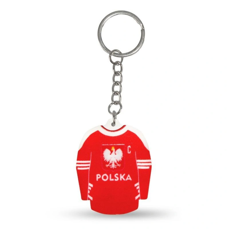 Brelok Koszulka Hokejowa Polska (Away) Pokaż swoje wsparcie dla reprezentacji Polski w hokeju na lodzie z tym unikalnym brelokiem w kształcie koszulki meczowej. Idealny dla kibiców i miłośników sportu, ten brelok to doskonały dodatek do kluczy, plecaka czy torby. Główne cechy: Design: Wersja oficjalnej koszulki hokejowej reprezentacji Polski w czerwono białych barwach. Z przodu znajduje się herb Polski oraz napis "Polska", dodając brelokowi patriotycznego charakteru. Białe detale na rękawach i ramionach podkreślają sportowy styl. Numer "23" na plecach: Na odwrocie widoczny jest czerwony numer "23" oraz logo Międzynarodowej Federacji Hokeja na Lodzie (IIHF), co dodaje autentyczności i sprawia, że brelok wygląda jak prawdziwa koszulka hokejowa. Zalety: Wytrzymały i lekki Praktyczny dodatek dla kibiców Doskonała pamiątka z meczu lub wydarzenia sportowego Ten brelok to świetny sposób na wyrażenie wsparcia dla polskiej drużyny hokejowej oraz doskonały prezent dla każdego fana.
