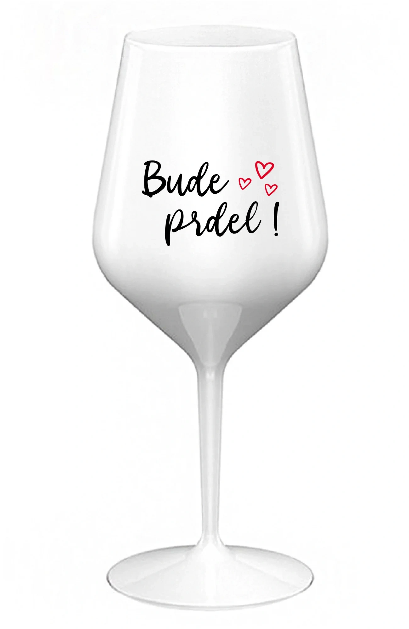 Nerozbitná bílá vinná sklenice s motivem BUDE PRDEL! je skvělá na zahradu, pláž, výlet, piknik a parádu udělá i při kempování. Jelikož je vyrobená z kvalitního polykarbonátu je de facto nerozbitná. Je to luxusní kousek, s nímž si víno můžete vychutnat prostě kdekoliv. Mají ergonomický tvar, který příjemně padne do ruky a protože je lehká, usnadňuje to její přenášení. Je snadno skladovatelná a lehce se čistí. Díky svému designu si s ní můžete vychutnat doopravdy kdekoliv bezproblémové pití výborného vína.